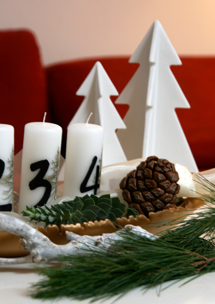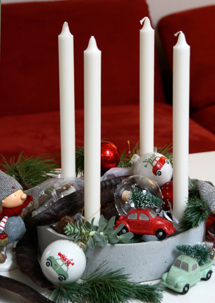 Bei uns soll die Adventsdekoration farblich zum Gesamtbild des Raumes passen.