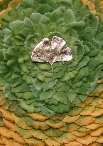 Ein besonders hübsches Ginkgo Blatt hab ich zum Schluss blattvergoldet und in die Mitte gesetzt.