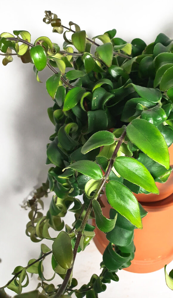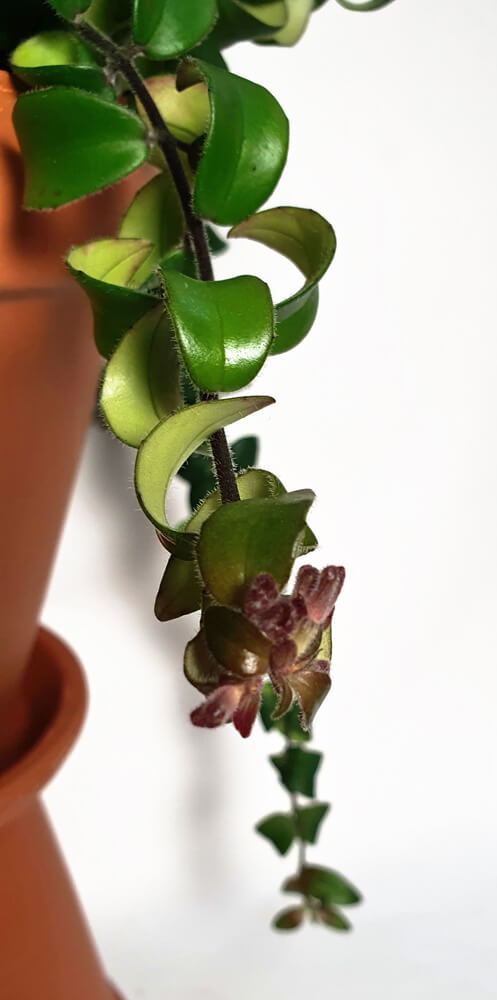 Diese sukkulente Pflanze Aeschynantus rasta Lippstick plant begeistert durch ihre besondere Optik der Blätter und hübschen roten Blüten.