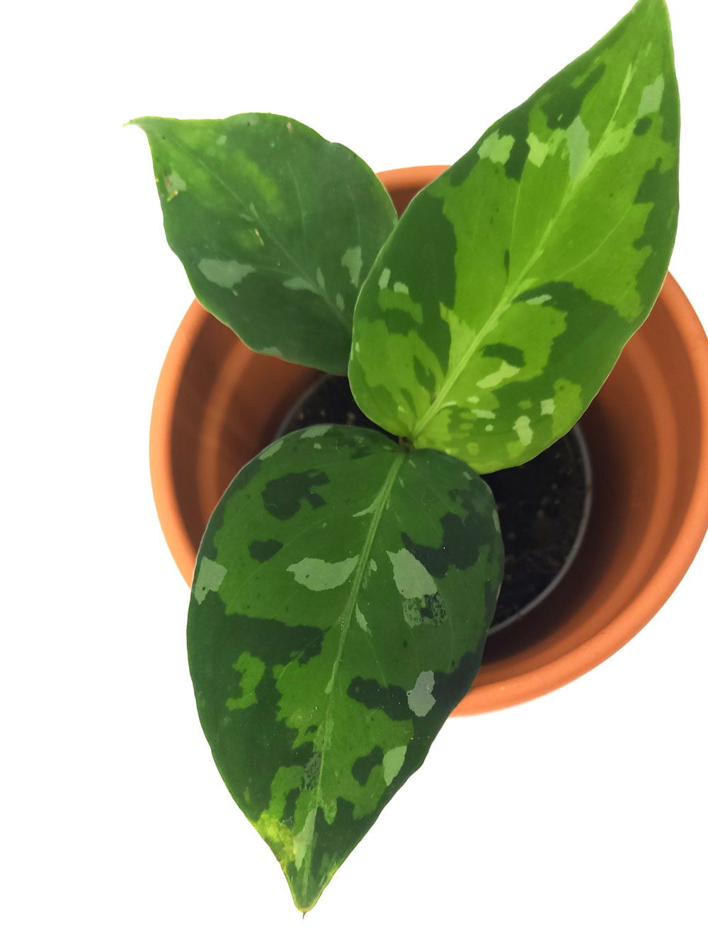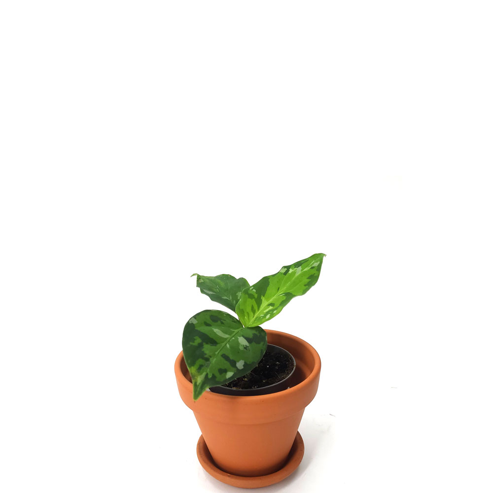 Die Aglaonema pictum tricolor ist mit ihrer besonderen Blattmusterung schon als Babypflanze ein echtes Highlight. Schon auf den ersten Blick ist erkennbar, warum sie auch als Camouflage-Pflanze bezeichnet wird. Ihre großen Blätter sind einem dreifärbigen Muster aus verschiedenen Grüntönen überzogen, das an Tarnkleidung erinnert. Im Vergleich zu anderen Aglaonemas ist A. pictum tricolor etwas anspruchsvoller in der Pflege, die außergewöhnliche Optik macht sie dennoch zu einem begehrten Sammlerstück, das sich nicht nur für erfahrene Planties eignet.