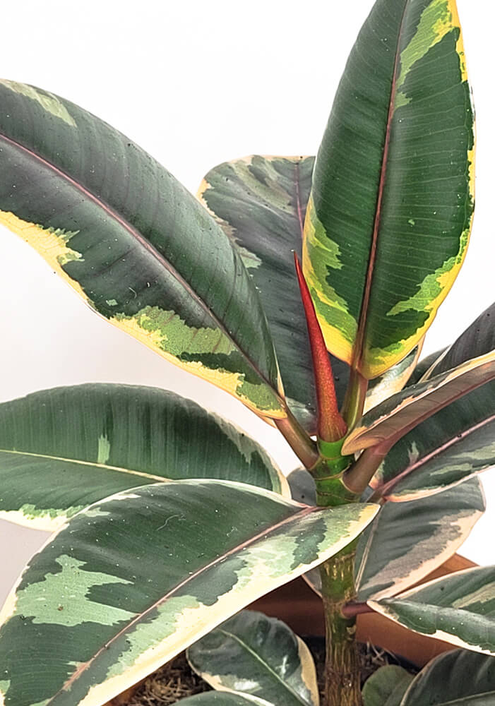 Pflege: Gieße erst wieder, wenn das Substrat bis zur Hälfte angetrocknet ist. Vermeide Staunässe oder ein totales durchtrocknen der Erde. Ein regelmäßiges abwischen der Blätter fördert die Pflanzengesundheit. Luftfeuchtigkeit liebt der Gummibaum, daher sollte er regelmäßig besprüht werden. Oder Du unterstützt die Pflanze durch einen Luftbefeuchter. Beim Umtopfen empfehlen wir unseren per Hand gemischten Tropenmix classic