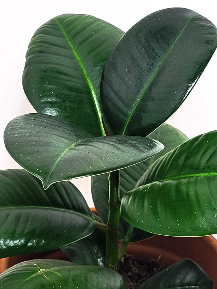 Pflege: Gieße erst wieder, wenn das Substrat bis zur Hälfte angetrocknet ist. Vermeide Staunässe oder ein totales durchtrocknen der Erde. Ein regelmäßiges abwischen der Blätter fördert die Pflanzengesundheit. Luftfeuchtigkeit liebt der Gummibaum, daher sollte er regelmäßig besprüht werden. Oder du unterstützt die Pflanze durch einen Luftbefeuchter. Beim Umtopfen empfehlen wir unseren per Hand gemischten Tropenmix classic