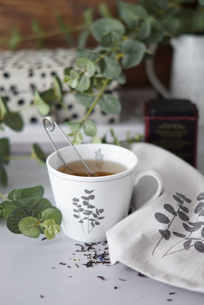 Hier mit hübschem Aufdruck von Eucalyptus Zweigen.