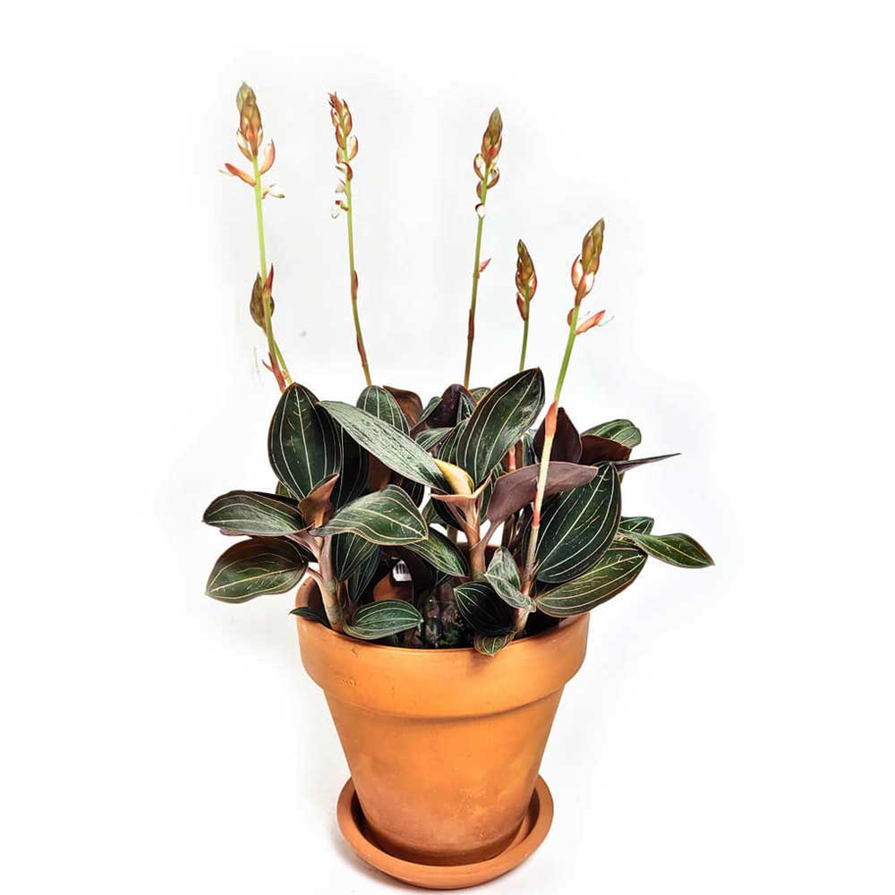 Sie bekommen eine Pflanze mit wunderschönen Blättern. Die Blüten sind je nach Jahreszeit an der Pflanze. Dies bedeutet Sie können auch eine Pflanze ohne Blüten erhalten. Wie erwähnt, sind die Blätter auch vorrangig das attraktive an dieser Pflanze Sie zählt zu den pflegeleichten Juwelorchideen und erfreut daher auch Pflanzenfreunde ohne grünem Daumen.