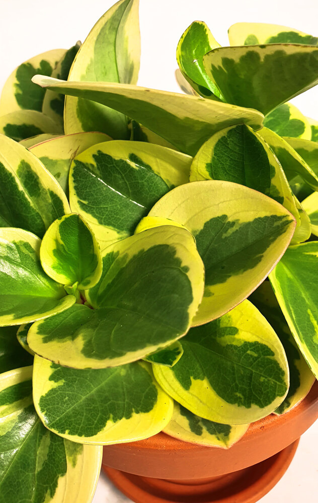 Peperomia Arten (Zierpfeffer) sind wasserspeichernde eher langsam wachsende Zierblattpflanzen. Diese umfasst um die 500 Arten. Hier die hübsche zweifärbige Peperomia obtusifolia variegata. Auch unter dem Namen Peperomia obtusifolia golden genua zu finden. Wie die meisten Peperomia Arten stammt diese aus der Amazonasregion Südamerikas. Dort wachsen sie eher halbschattig und warm. So sollte auch der Standort für deine Pflanze sein. Sie können um die 50 cm hoch wachsen, benötigen mit der Zeit jedoch eine Stütze, eventuell durch natürliche Zweige oder Bambusstäbe. Besonders tierfreundlich, da sie keine Giftstoffe in sich trägt!